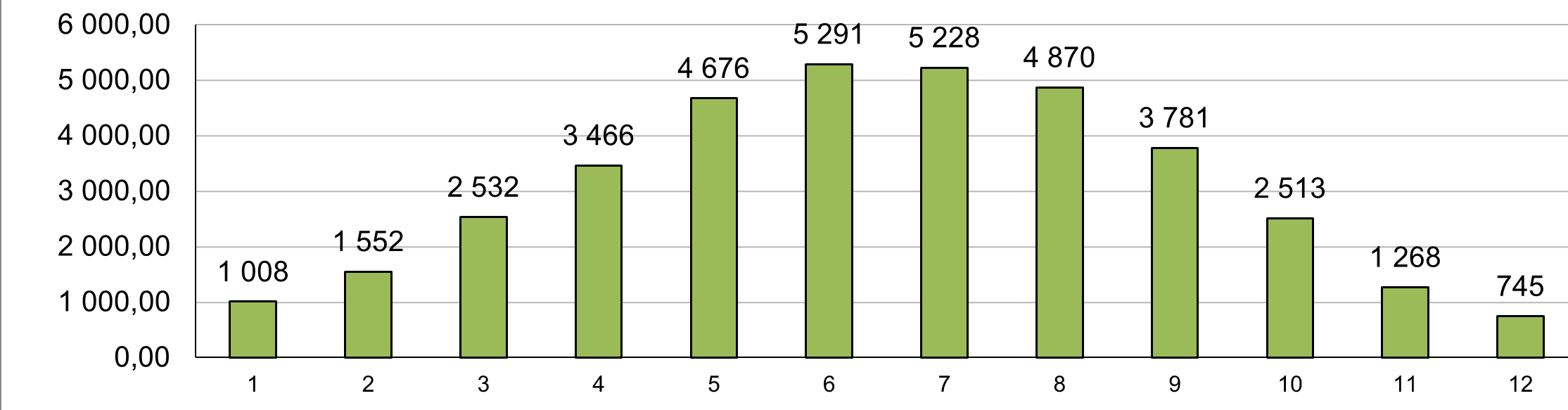 - Максимальная выработка летом — 176,36 кВт в сутки