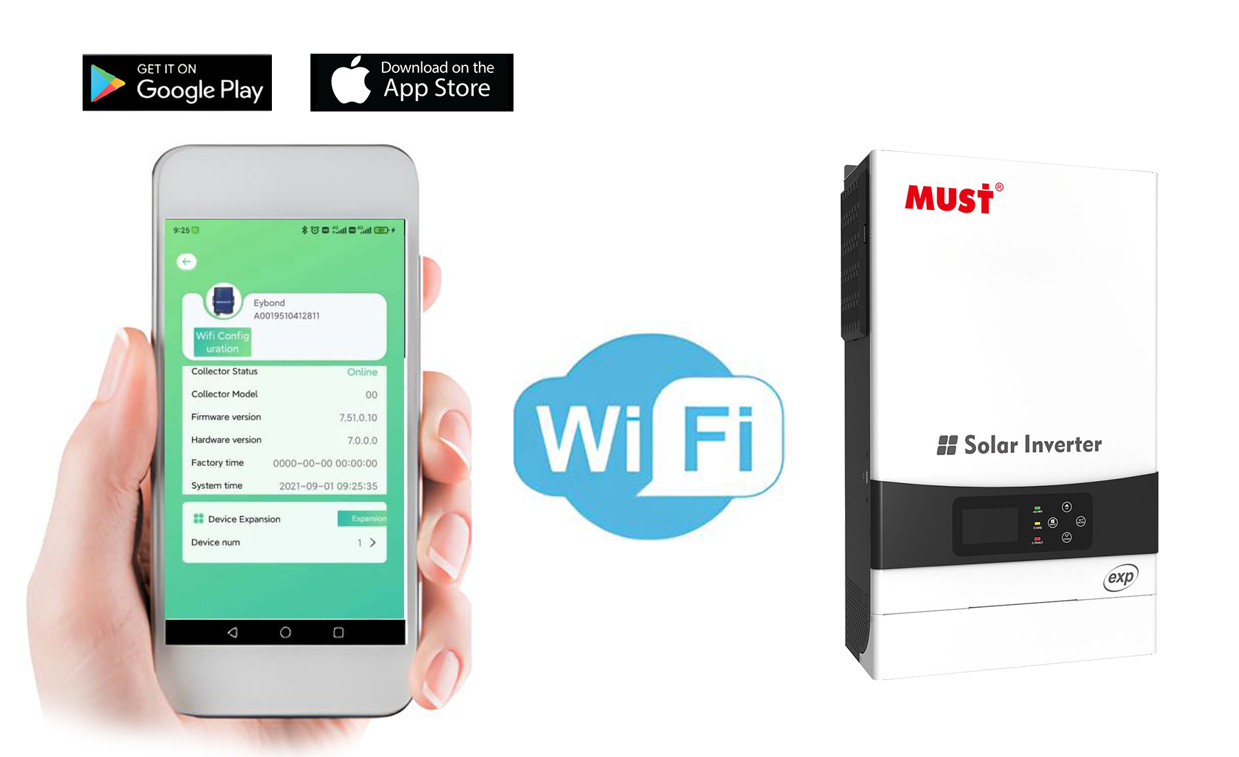 Гибридный солнечный инвертор оборудован модулем Wi-Fi, что позволит Вам легко подключаться к устройству через беспроводную сеть. Эта функция предоставляет возможность мониторинга и управления инвертором удаленно с использованием смартфона, планшета или компьютера. Через Wi-Fi Вы можете получать информацию о текущем состоянии инвертора, регулировать настройки и даже осуществлять удаленное управление работой устройства.