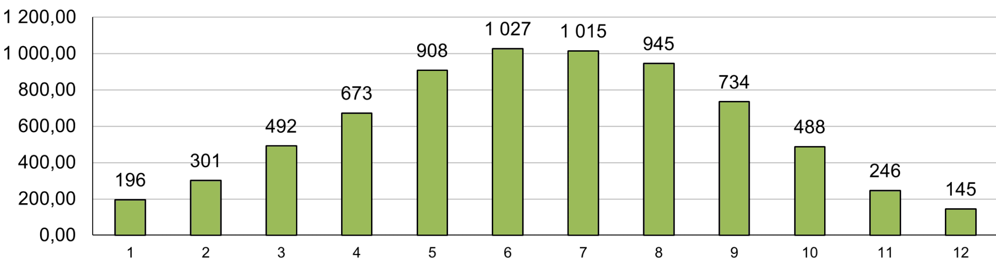 - Минимальная выработка летом — 15,25 кВт в сутки
