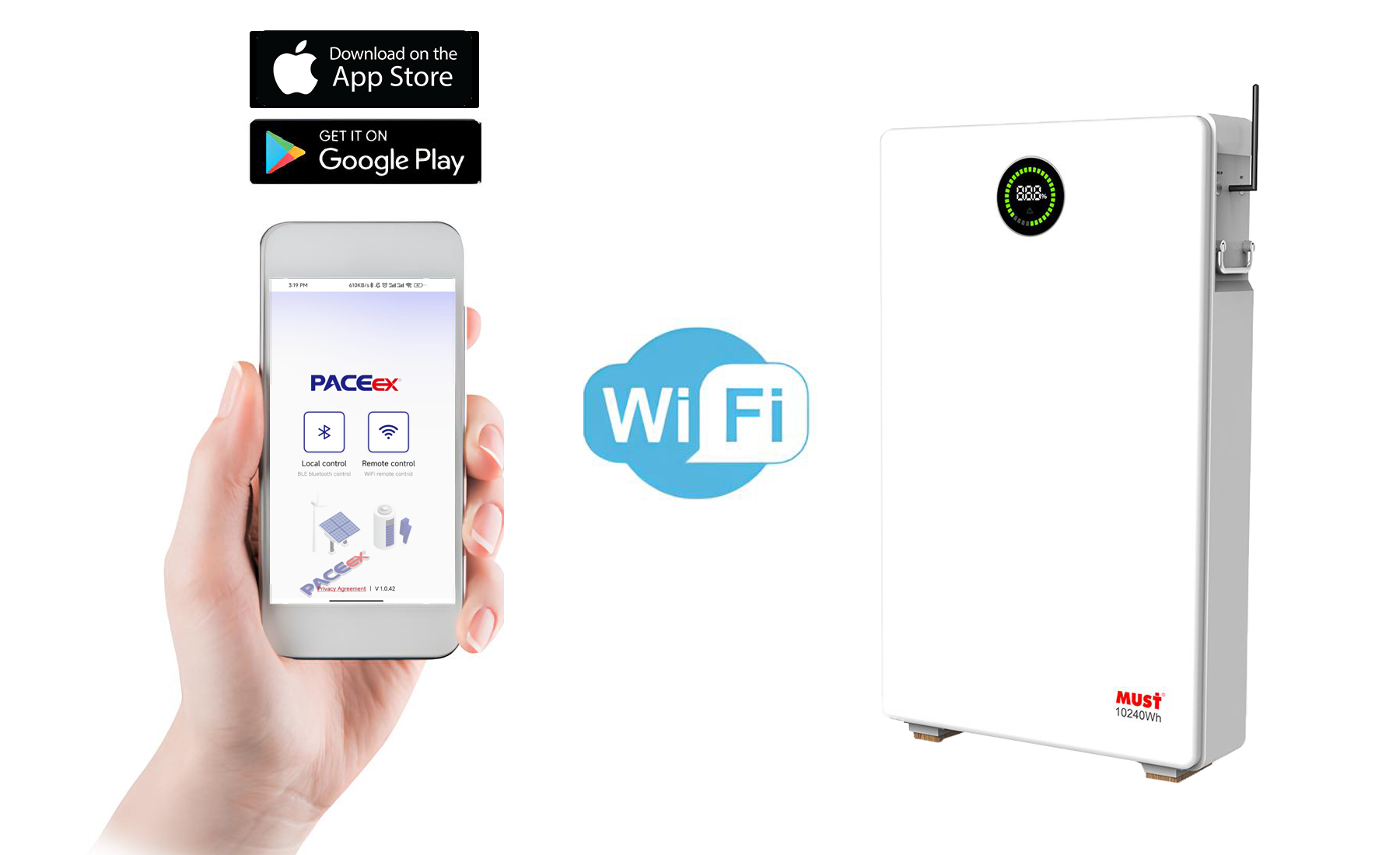 У аккумулятора LiFePO4 MUST 51.2-200 есть возможность удаленного мониторинга по Wi-Fi. У Вас будет возможность управления аккумулятором, просматривать состояние батареи, а также регистрировать, диагностировать и оповещать о состоянии батареи в режиме реального времени с использованием смартфона, планшета или компьютера в любое время и в любом месте.