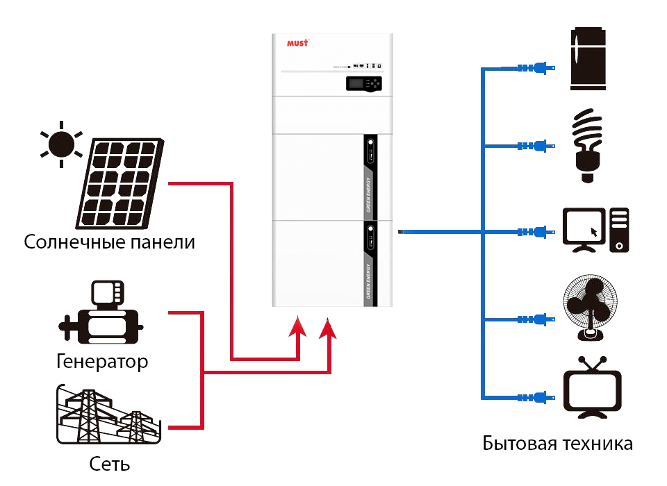 Система накопления энергии MUST HBP18-5548 ESS поддерживает питание от инверторного генератора, что делает ее незаменимой в отдаленных районах или местах с нестабильным электроснабжением. Использование энергии от генератора обеспечивает стабильное и эффективное энергоснабжение, даже в условиях ограниченного доступа к электроэнергии.