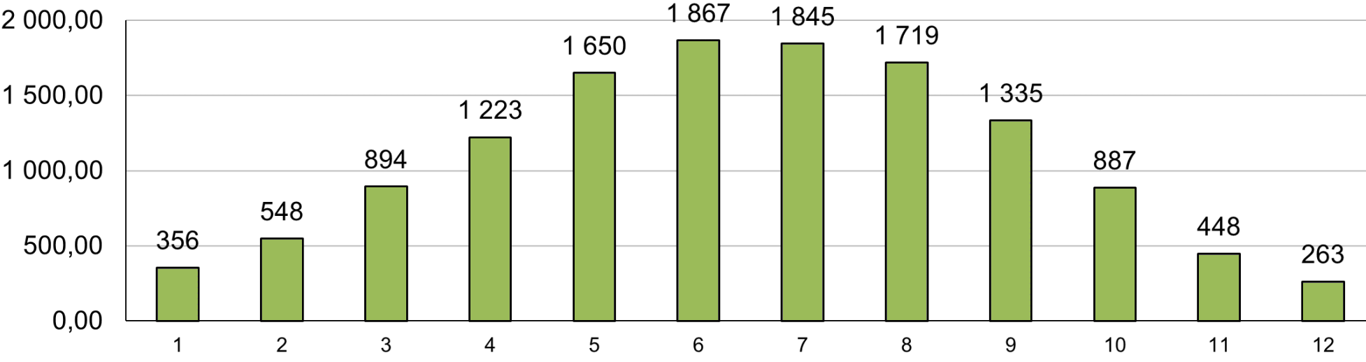- Минимальная выработка летом — 55,45 кВт в сутки