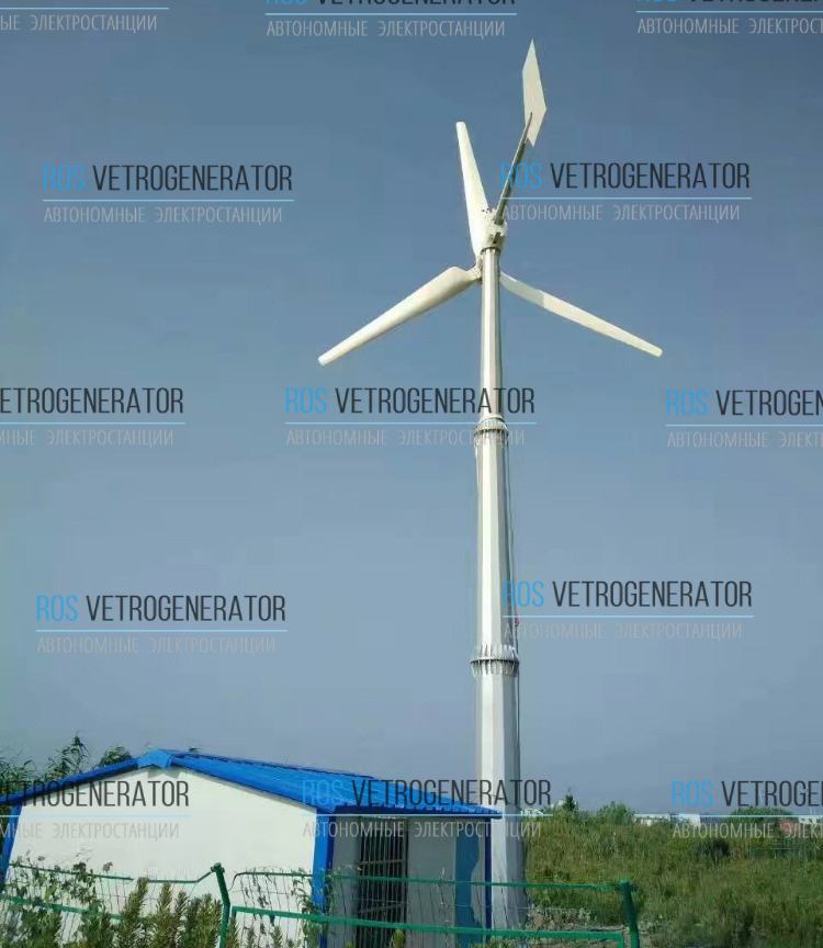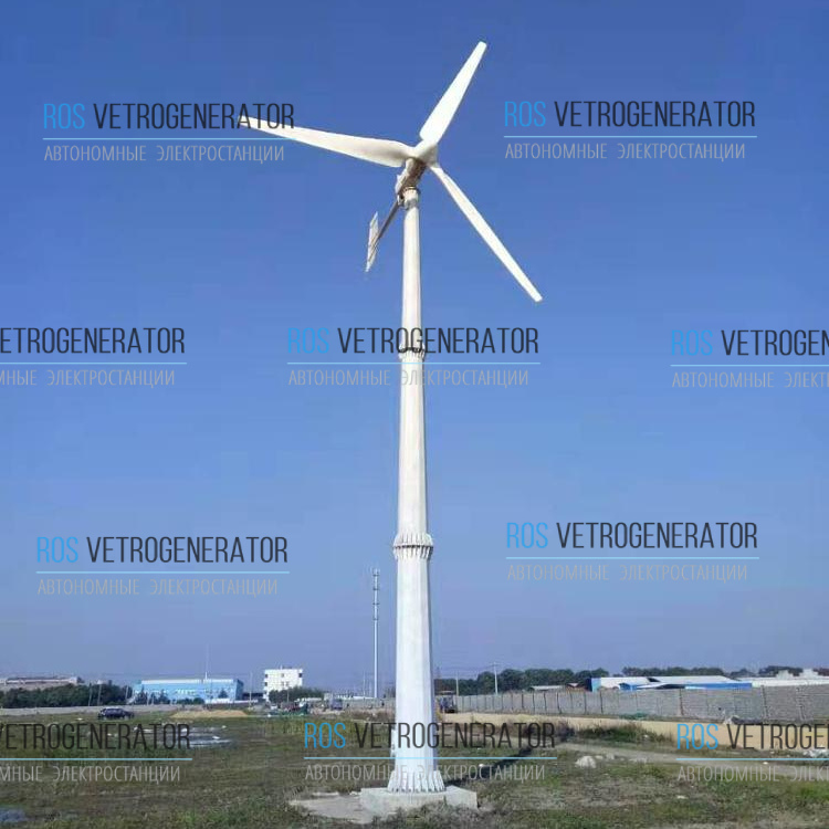 Трехлопастной ветрогенератор горизонтального типа, номинальной мощностью 20 кВт.
