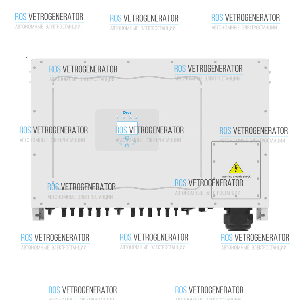 Инвертор Deye SUN-100K-G03 — это сетевой трехфазный инвертор мощностью 100 кВт, предназначенный для преобразования постоянного тока, поступающего от солнечных панелей, в переменный трехфазный ток, пригодный для подачи в общую электрическую сеть. Инвертор обладает высокой эффективностью — до 98,8%, и оснащен 6-ю независимыми MPPT-портами, что позволяет более гибко работать с солнечными панелями при различной ориентации и освещенности. Благодаря встроенному модулю Wi-Fi обеспечивается удалённый мониторинг через мобильное приложение, доступное как для iOS, так и для Android.