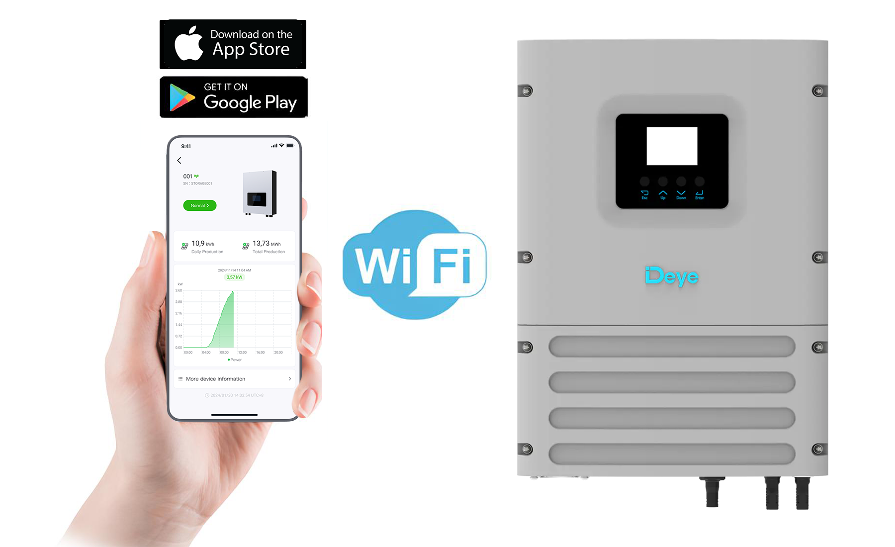 У инвертора Deye SUN-6K-OG01LP1-EU-AM2 есть возможность удаленного мониторинга по Wi-Fi. У Вас будет возможность удаленного мониторинга и управления инвертором удаленно с использованием смартфона, планшета или компьютера. Через Wi-Fi Вы можете получать информацию о текущем состоянии инвертора, регулировать настройки и даже осуществлять удаленное управление работой устройства.