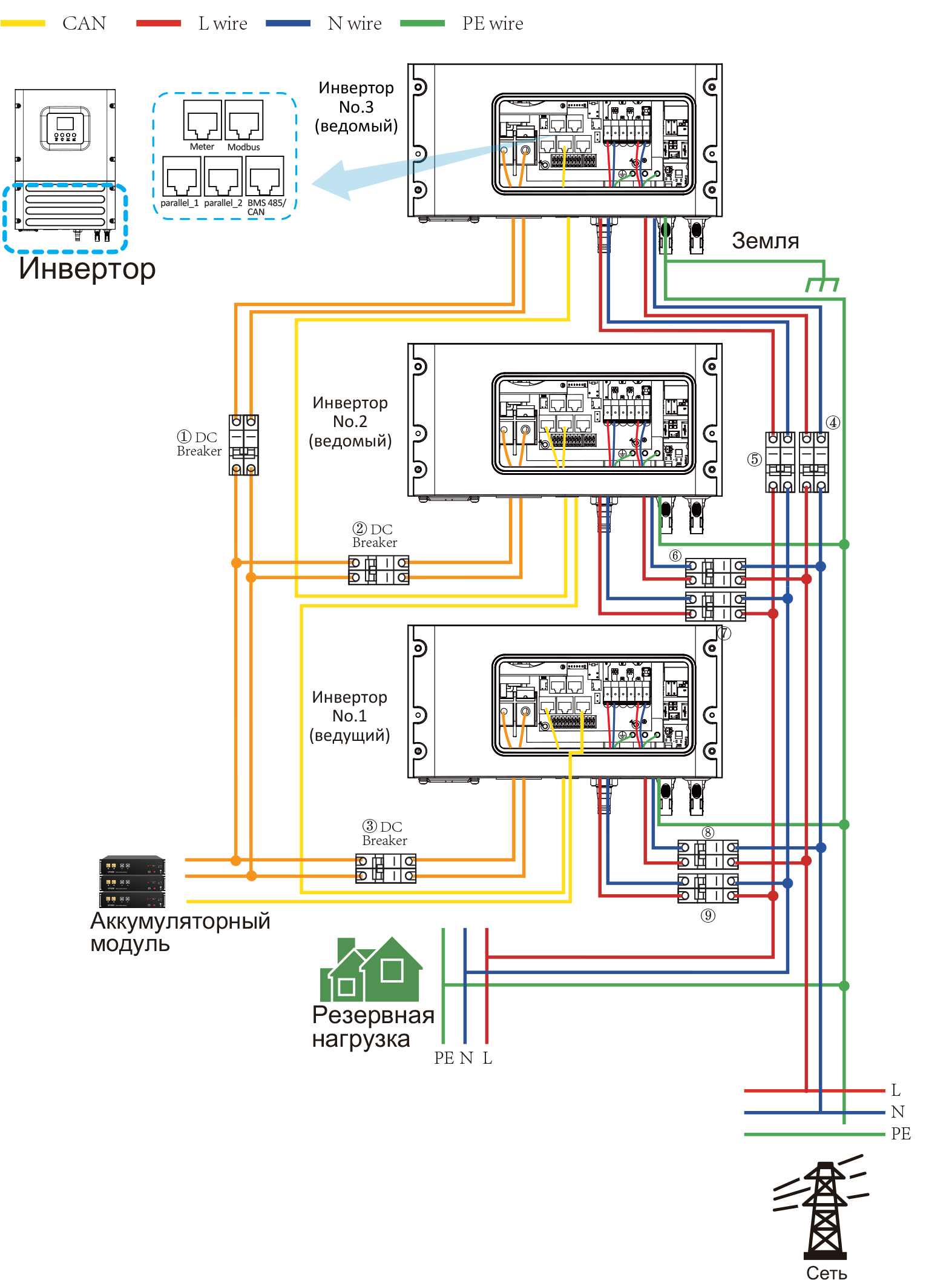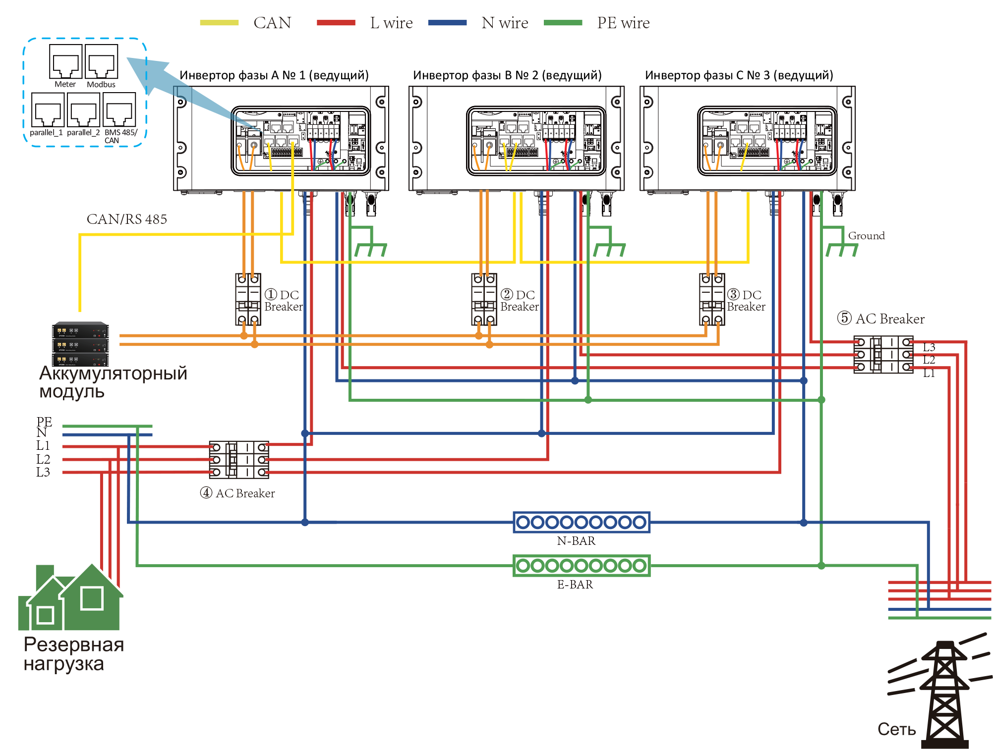 Схема трехфазного параллельного подключения