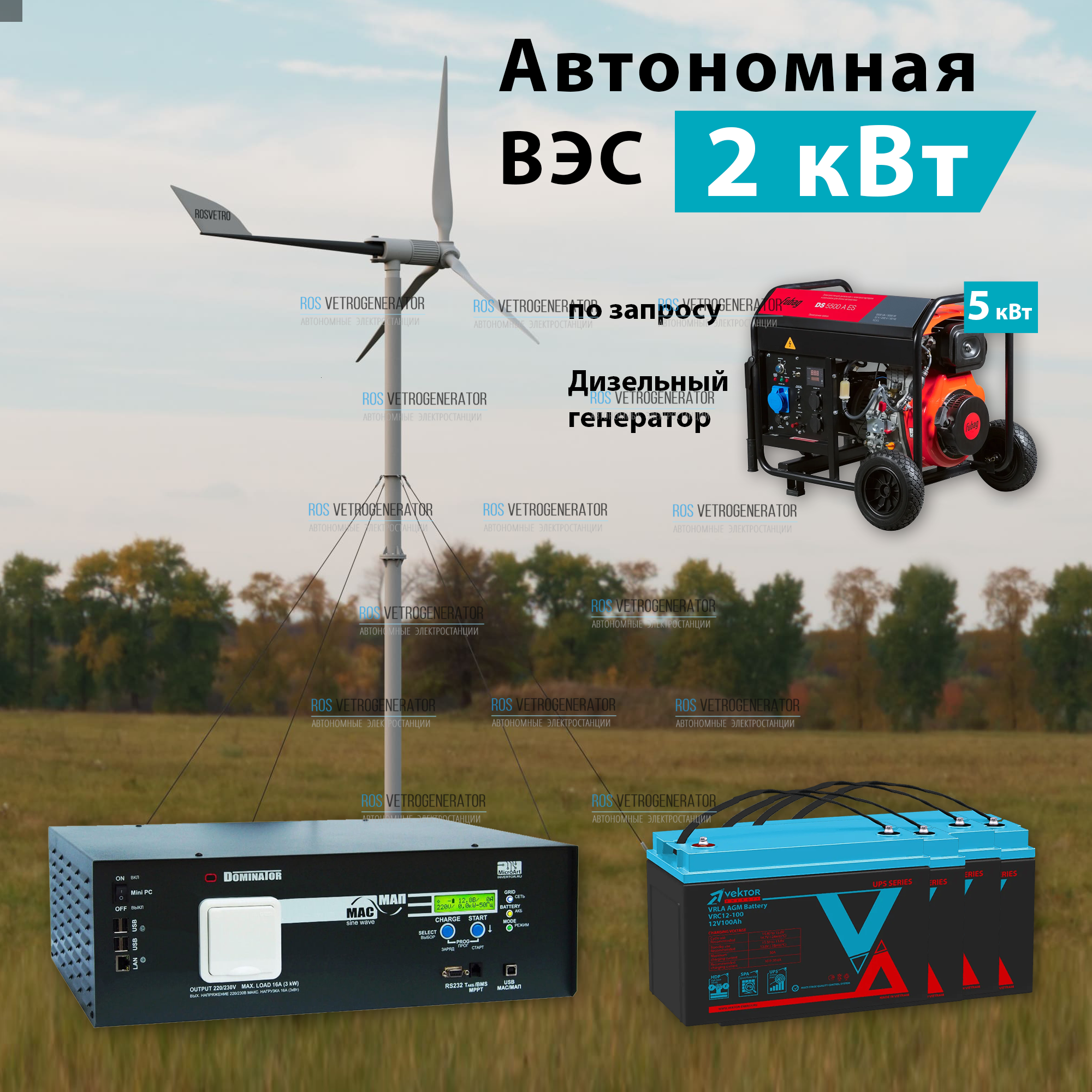 Электростанция ВЭС-2K карбон мощность 2 кВт – это надежный и эффективный способ энергоснабжения практически в любом месте, оснащенная различными компонентами для обеспечения надежного и эффективного электропитания в условиях переменных обстоятельств. Этот тип энергетической системы объединяет два источника энергии - ветрогенератор и дизельный генератор, что позволяет обеспечивать стабильное и эффективное электроснабжение.